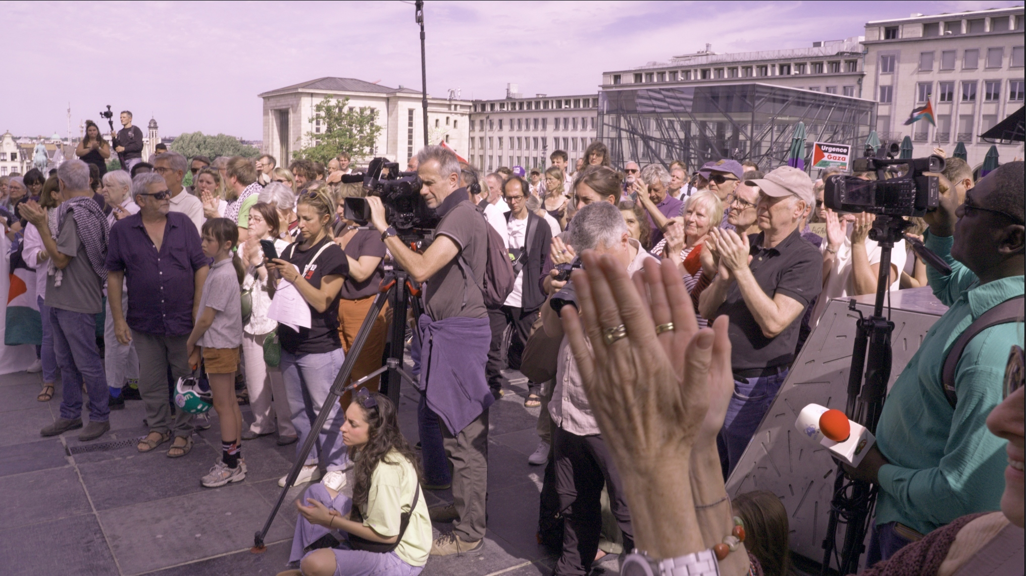Palestijnse, Belgische en internationale persorganisaties sloegen de handen in elkaar en organiseerden een solidariteitsbijeenkomst voor de door Israël vermoorde journalisten in Gaza.