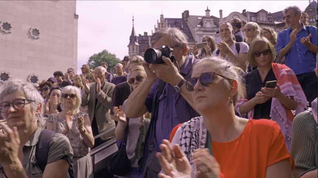 Charlotte Michils, secretaris-generaal van de Vlaamse Vereniging van Journalisten (VVJ), organiseerde mee het herdenkingsmoment en eerbetoon aan de 200+ Palestijnse journalisten die om het leven kwamen waarvan velen met voorbedachte rade vermoord door het Israëlisch leger.
